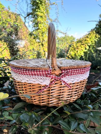 Metal Picnic Basket – Rectangular Red / White Plaid lining