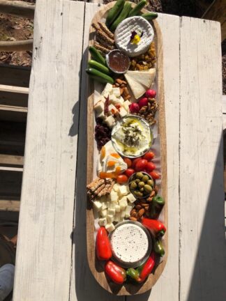 מגש גבינות מעוצב אובלי קעור ל-8-10 סועדים בתוספת ירקות גינה